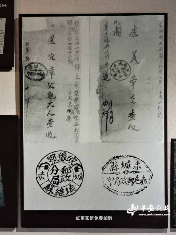 “我参加红军一月多了,未有回家,不知父母大人身体康健否……革命一天天高涨,苏区一天天发展……请父母大人接信后,火速回信转为安。”在赤色邮局里,收藏着两封宝贵的红军家信影印本。据介绍,革命时期斗争艰巨而残酷,红军战士留下的家书十分罕见,战士卢炳银的这两封家书现在为国家一级革命文物。信封上所盖的赤色邮戳,是革命战争时期赤色邮政事业的见证,是全国苏区红色邮政机构留下的唯一印记。